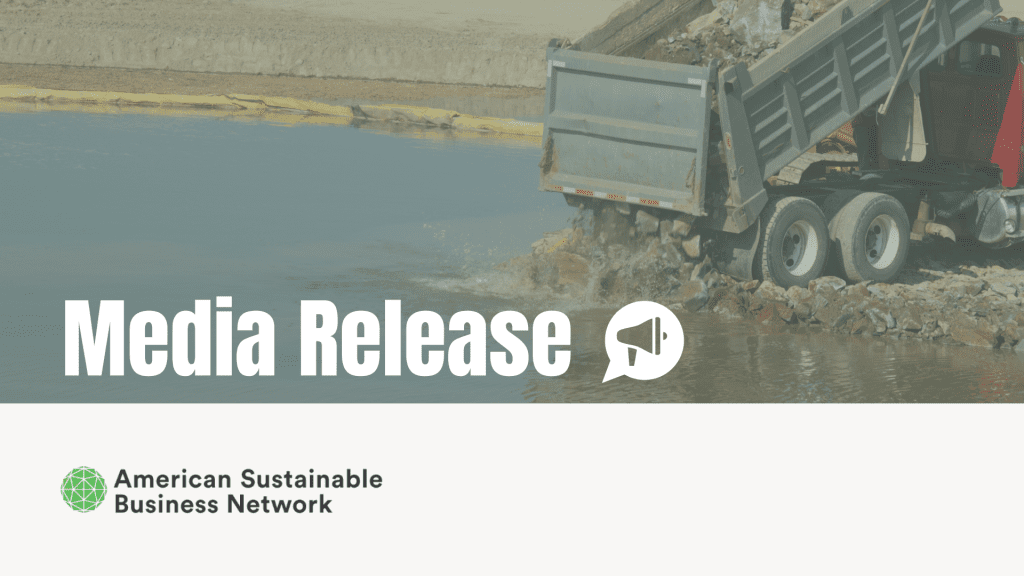 WASHINGTON, D.C. – The American Sustainable Business Network (ASBN), alongside 90 business leaders from nationwide, is calling on Congress to reject H.R. 3898, the “Promoting Efficient Review for Modern Infrastructure Today” (PERMIT) Act. In addition, ASBN and its members are urging the EPA to withdraw its proposed Waters of the United States (WOTUS) rule—two coordinated threats to the water systems that underpin American business and community resilience.
